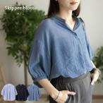 ブラウス シャツ 「S-LL/洗濯後しわになりにくい」ランタン5分袖 スキッパーブラウス レディース