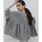 ブラウス シャツ 七分袖フリルデザインギンガムチェックブラウス レディース