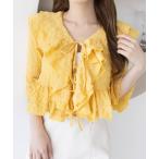 ブラウス シャツ 夏にぴったり!ひんやり接触冷感ラッフルフリルフレアースリーブTブラウス レディース