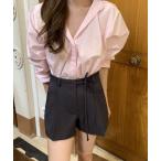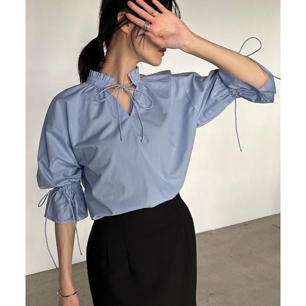 ブラウス シャツ 「7分袖」多種ボタン後ろレースアップタケノコタックシャツ レディース