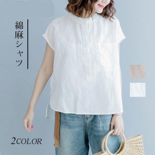 シャツ ブラウス レディース 半袖 おしゃれ 白 ゆったり 涼しい フレンチスリーブ リネン混 トップス シャツ 無地