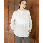 ブラウス シャツ 薄手コットン長袖バンドカラーシャツブラウス レディース