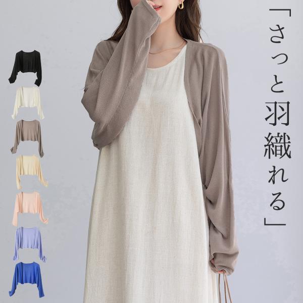 メール便送料無料 「さっと羽織れる」ボレロ カーディガン ショート丈 薄手 レディース 長袖 トップス サマーニット 透け感 ドルマンスリーブ 羽織り 伸縮性 通気性 涼しい オフィスゆ...