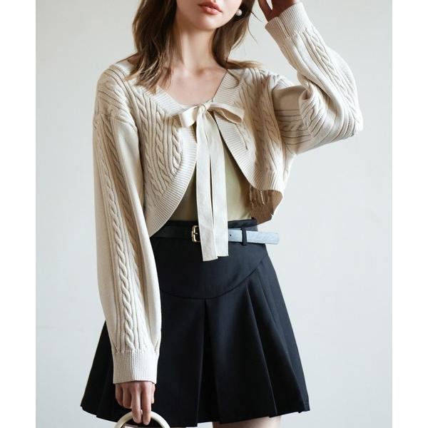 カーディガン ケーブル編みリボンボレロカーディガン レディース
