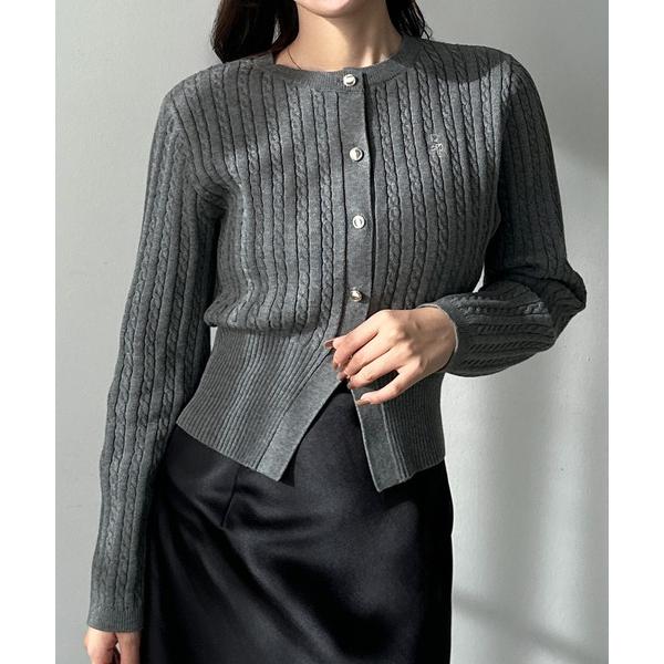 カーディガン ゴールドボタンケーブルニットカーディガン レディース