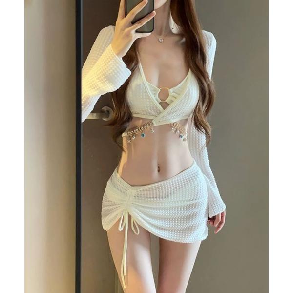 水着 レディースビキニ水着 ワンピース付き3点セット レディース