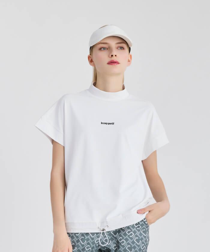 ドルマンスリーブでワイドめのシルエットが特徴のモックネックシャツ。裾口は布帛で切り替え、ドローコードを通した機能的かつ遊び心あるデザインです。#ルコックスポルティフゴ...