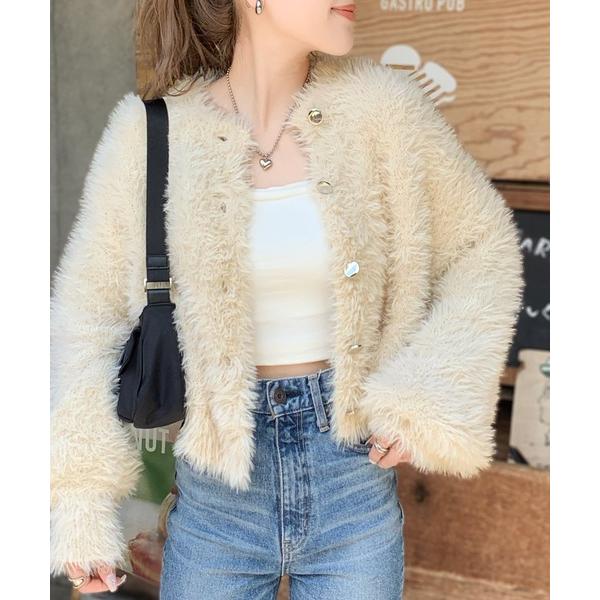 カーディガン 「mily bilet」ふんわり大人可愛い。ボリューム袖クロプドシャギーカーディガン レディース