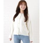 カーディガン パールボタンケーブルニットカーディガン レディース