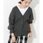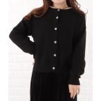 カーディガン パール付きボリューム袖ニットカーディガン レディース