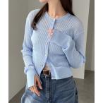 カーディガン ショート丈シアーリブニットカーディガン レディース