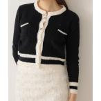 カーディガン ゴールドボタン 配色ライン ニットカーディガン ショート丈 レディース