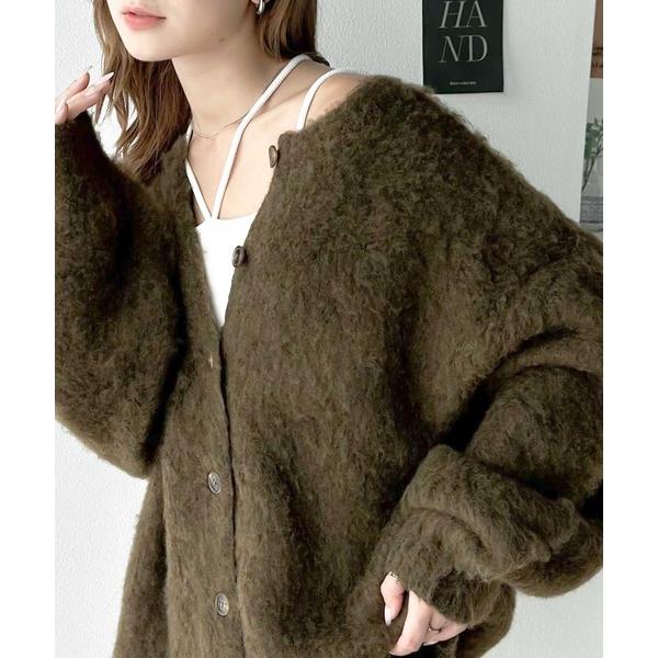 カーディガン カールシャギーニットカーディガン レディース