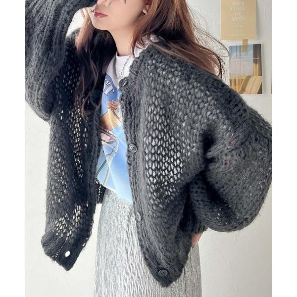 カーディガン オーバーサイズシアーニットカーディガン レディース
