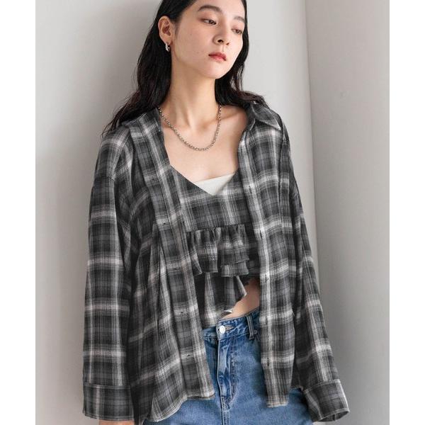 ブラウス シャツ オーバーサイズ チェック柄ジャケット レディース