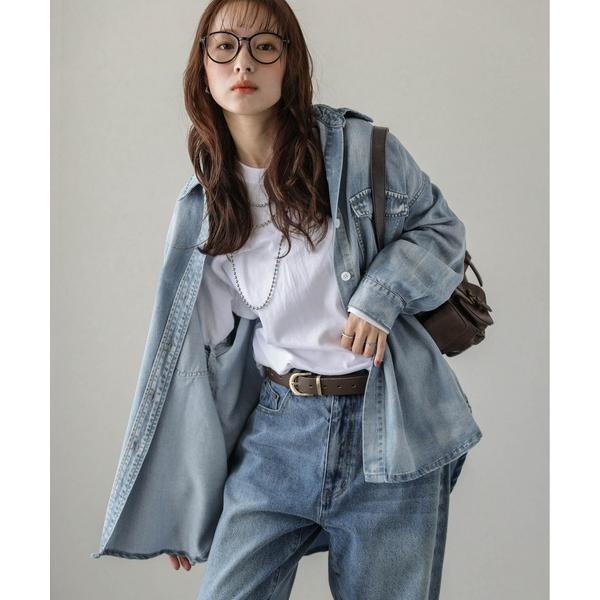 ブラウス シャツ ラウンドヘムデニムシャツ レディース