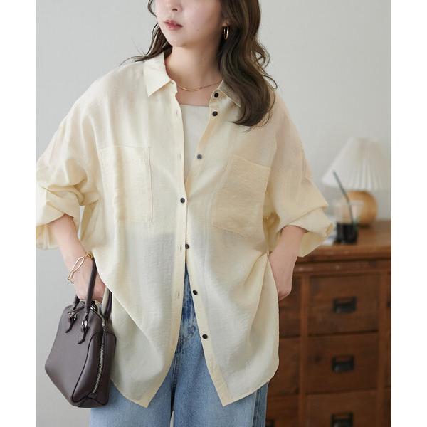 ブラウス シャツ 「新色追加!!」シアー黒釦ビッグシャツ レディース