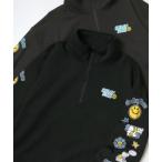 トレーナー スウェット SMILEY FACE/スマイリーフェイス オーバーサイズ 裏起毛 袖プリント ロゴ ワンポイント刺繍 ハーフジップ スウェッ