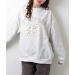 トレーナー スウェット カレッジロゴ刺繍サイドスリット裏起毛オーバーサイズスウェット レディース