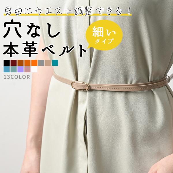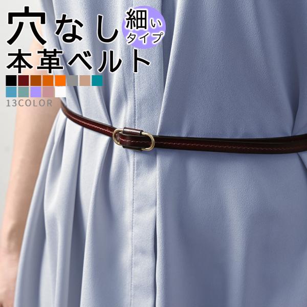 ベルト レディース 本革 ワンピース用 細 穴なし おしゃれ 革 レザー 細い バックル ゴールド 黒 白 ブラック ホワイト 長さ調節 OL 通勤 通学 社会人 高校生