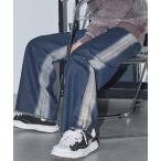 ジーンズ デニム デニムパンツ ヴィンテージスプレー加工サイドライン カットオフ ワイドデニムパンツ レディース メンズ