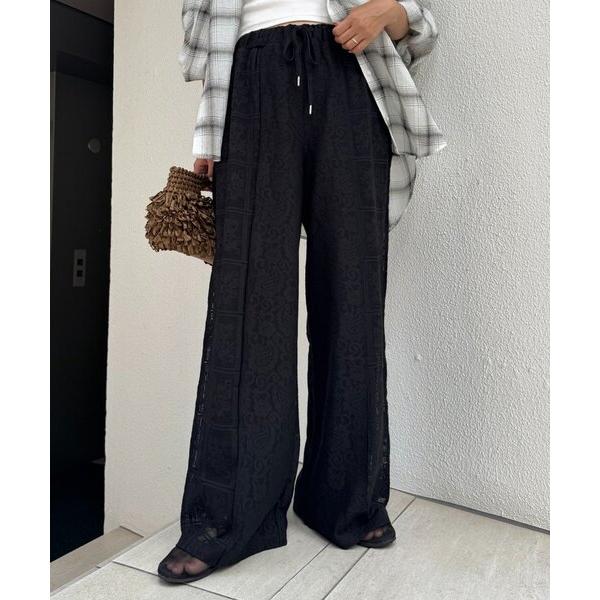 パンツ パッチワーク切替レースワイドパンツ レディース