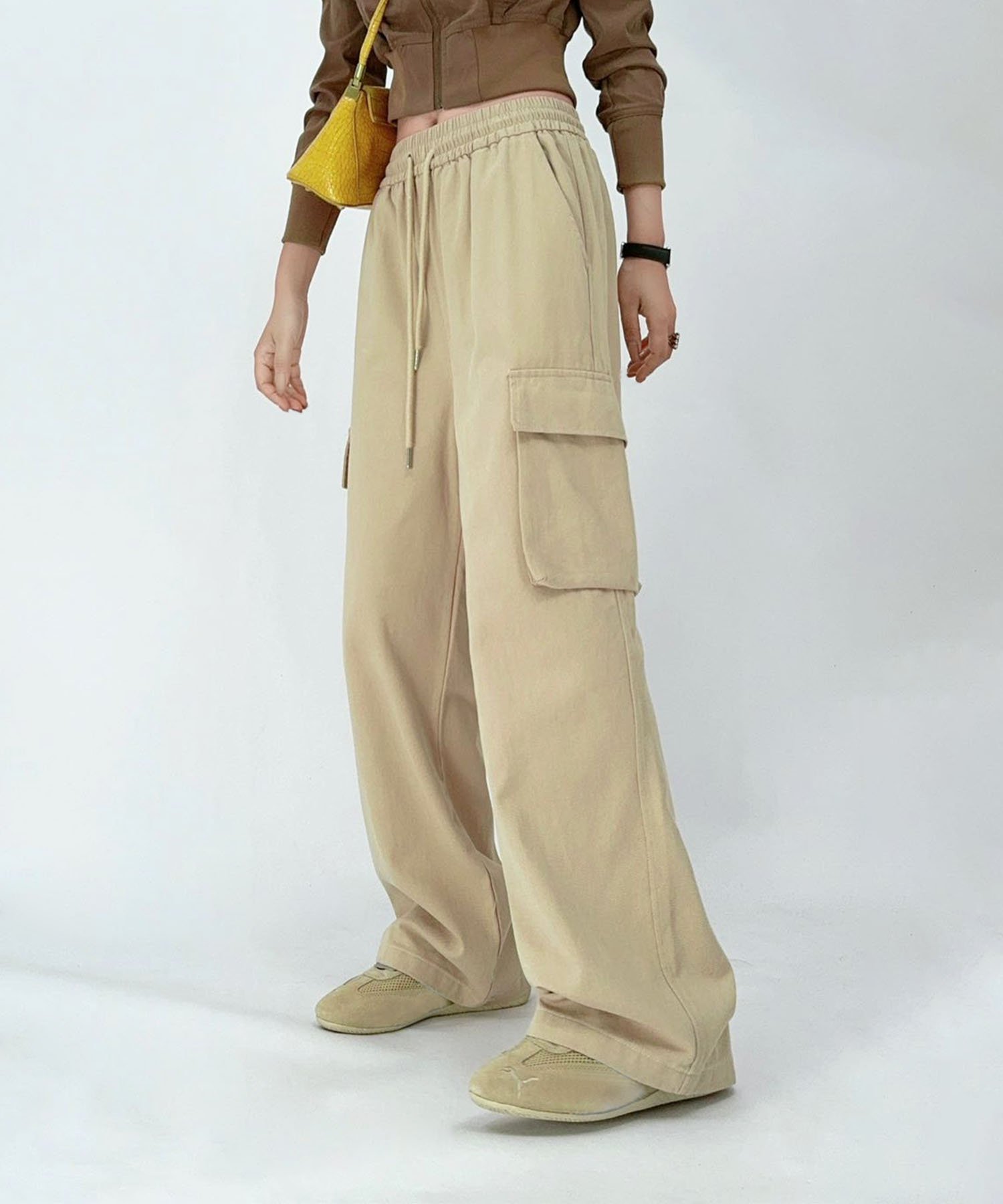 カーゴパンツ 2タック ワイドカーゴ タックスラックスパンツ レディース