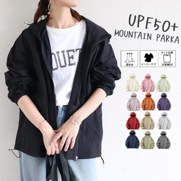 マウンテンパーカー トップス レディース アウター 羽織り UVカット 春 夏 白 黒 おしゃれ ドローコード 裾絞り ポケット付き フード付き 長袖 UPF50+ 日焼け防止 紫外線対策 薄手 無地 日...
