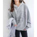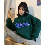 パーカー 裏毛カレッジエンブロイダリーロゴ長袖スウェットパーカー レディース