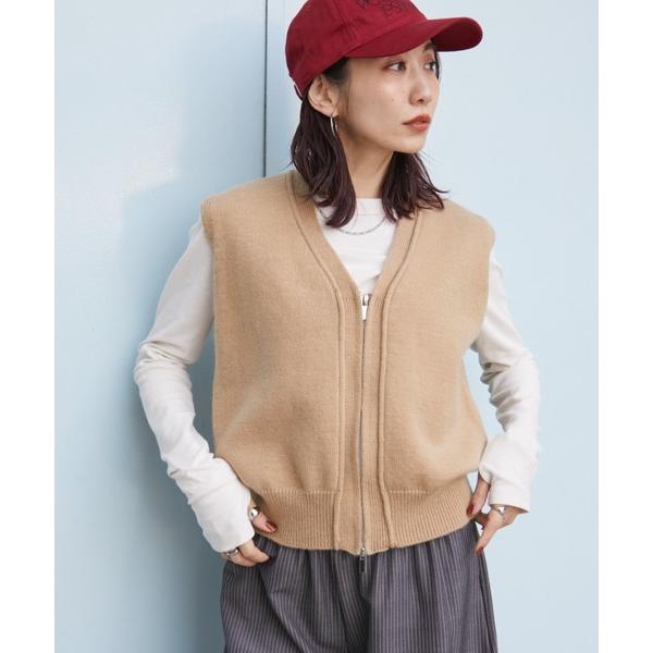 ベスト ジレ Vネックジップアップニットベスト レディース