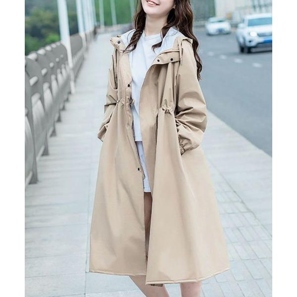 レインコート カッパ ウエスト シェイプ フーデット ロング レインコート レディース