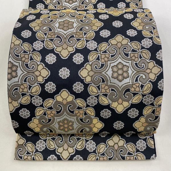 美品 袋帯 逸品 人間国宝 北村武資 落款あり 銀座もとじ 華文 花 金糸 黒 六通 正絹 中古