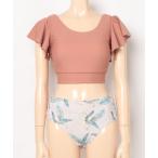水着 「Beach Queen / ビーチクイーン」レディースフリルスリーブバックリボンビキニ トロピカル柄 水着 レディース