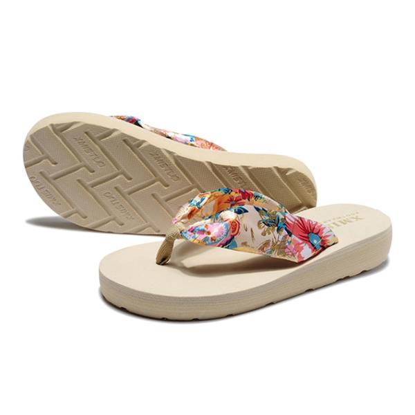 ビーチ サンダル レディース 厚底 花柄 軽い トング 歩きやすい ヒール 海 女の子 レジャー 滑り止め 黒 白