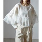 tシャツ チュールフリル付きデザインロングTシャツ レディース