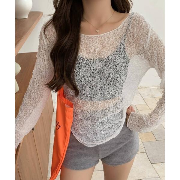 【SALE/50%OFF】カットソー シアー レディース 長袖 トップス プルオーバー ロンT ロングTシャツ ショート丈 クロップド丈 クルーネック 無地 ゆったり 透け感 レイヤード シンプル カジュアル きれいめ おしゃれ トレンド 通勤 オフィス 着回し BLUEEAST【ネコポス】