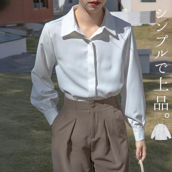 メール便送料無料 「なんでも合うミニマル」オフィス シャツ レディース ビジネス 長袖 トップス ワイシャツ ツイル生地 透け感 前開き 比翼ボタン レギュラーカラー セットインスリ...