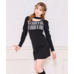 ワンピース ビジューリボンニットミニワンピース