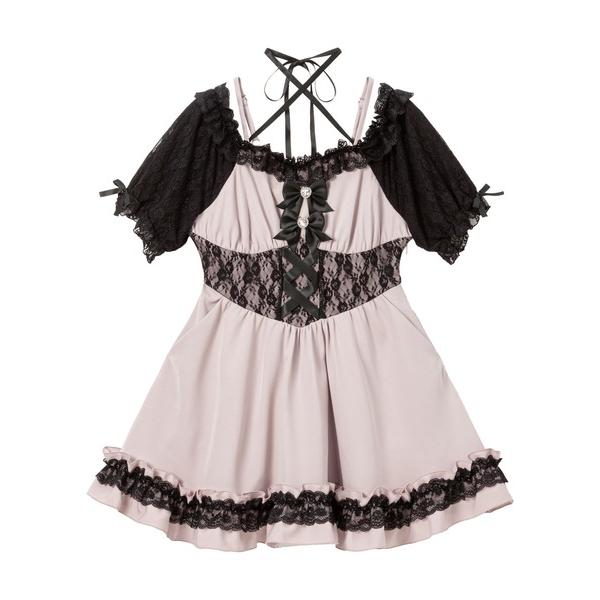 ワンピース 十字架チャーム角襟レースティアードワンピース