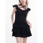【50%OFF】ワンピース 半袖 サイドリボンミニTシャツ ラップスカート風 ショート丈 無地 タイト セクシー シンプル カジュアル 韓国風 ダーク SML JOCOSA 8843