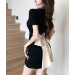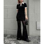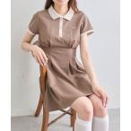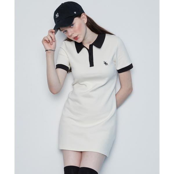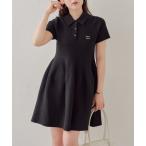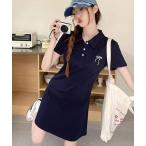 ワンピース リボン刺繍 ポロシャツミニワンピース