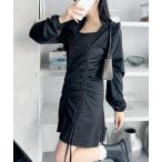ワンピース 肩パフスリーブ ギャザーデザイン ワンピース