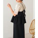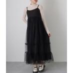 ワンピース チュール フロントリボン キャミソール ロング ワンピース