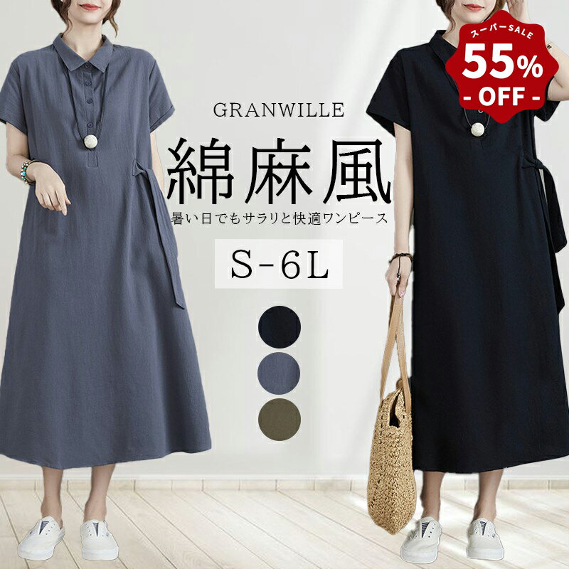 【スーパーSALE 55%OFF+ポイントUP】 ワンピース レディース 夏 きれいめ 大きいサイズ 体型カバー 半袖 春 シャツワンピース ロングワンピース マキシワンピース 低身長 着痩せ 細見え 無地 おしゃれ カジュアル 涼しい マキシ マキシ丈 ロング丈 Aライン ワンピ