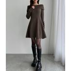 ワンピース オフショル風スクエアネックロングニットワンピ