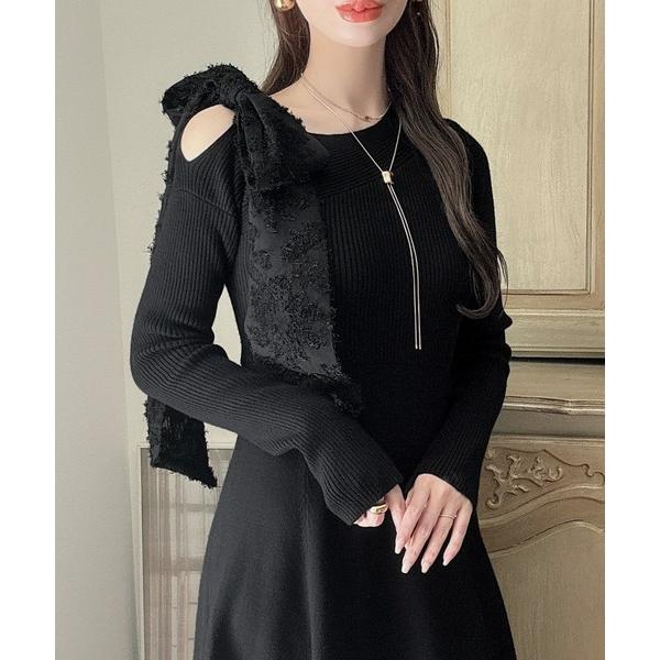 【SALE/50%OFF】SAISON DE PAPILLON ファー襟付き2wayニットワンピース セゾン・ド・パピヨン ワンピース・ドレス ワンピース ブラック グレー