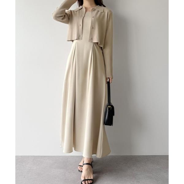ワンピース ショートポロカーディガン+ノースリーブフレアワンピースset
