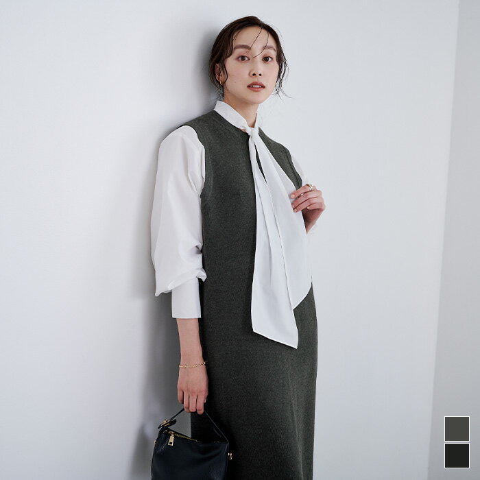 【SALE/76%OFF】JUNOAH オーガンジーバックリボンリブカットワンピース ジュノア ワンピース・ドレス ワンピース ブラック グレー ベージュ