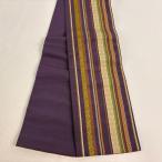 半幅帯 秀品 証紙あり 博多織 花柄 縞 灰紫 正絹 中古