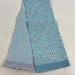 美品 半幅帯 優品 花 幾何学模様 水色 化繊 中古